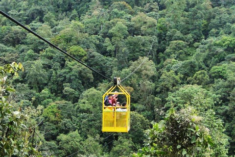 10h00 Mindo Disfrutaremos de un recorrido en La Tarabita donde admiraremos los bosques tropicales de Reserva Ecológico de Nambillo a 150 metros de altura. En esta atracción un carrito sobre un cable te llevará por un paisaje increíble y te ahorrará tiempo para llegar a la entrada al conocido «Santuario de Cascadas»